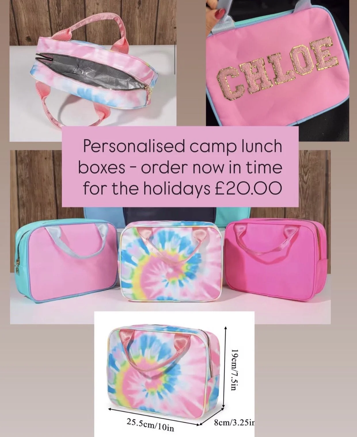 You can even add a personalised patch lunch box to your booking! [see photo example below]